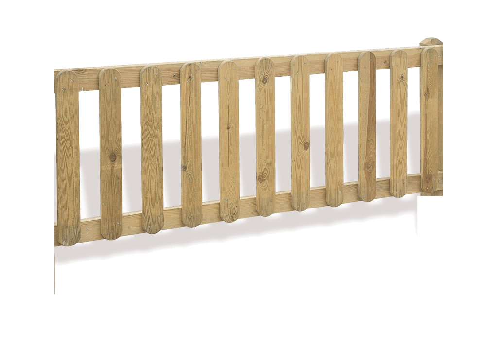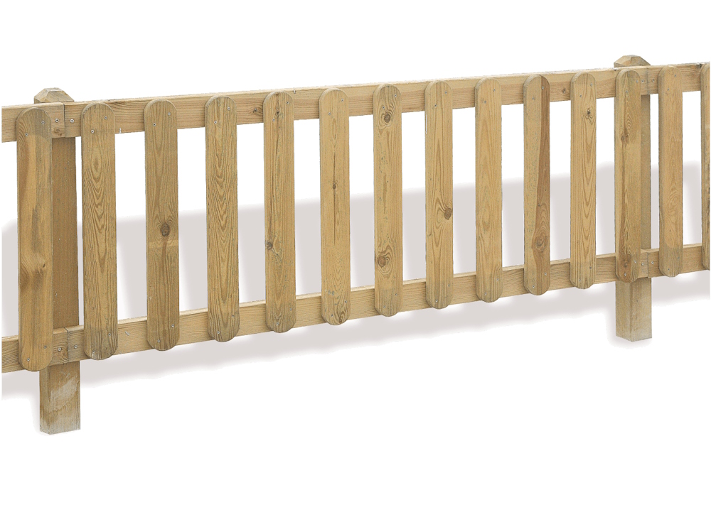 Conjunto Lamas Valla Rústica plana VRV470R fabricada en madera de pino con tratamiento autoclave a vacío-presión clase 4 contra la carcoma, termitas e insectos. Postes verticales de 1170 x 90 mm. Lamas con cantos redondeados.