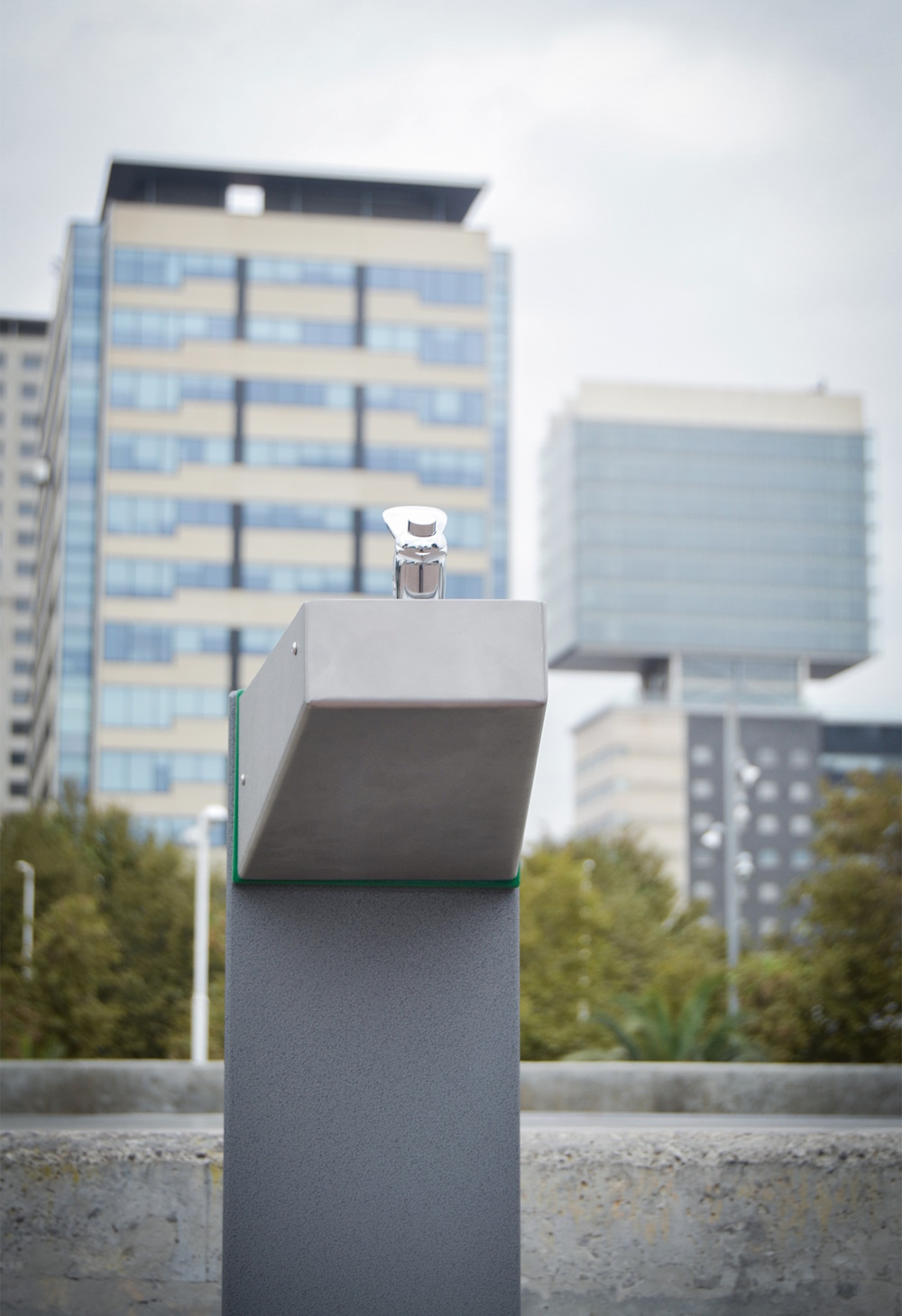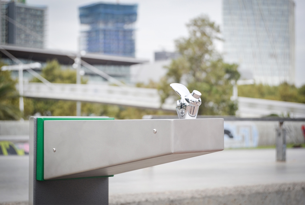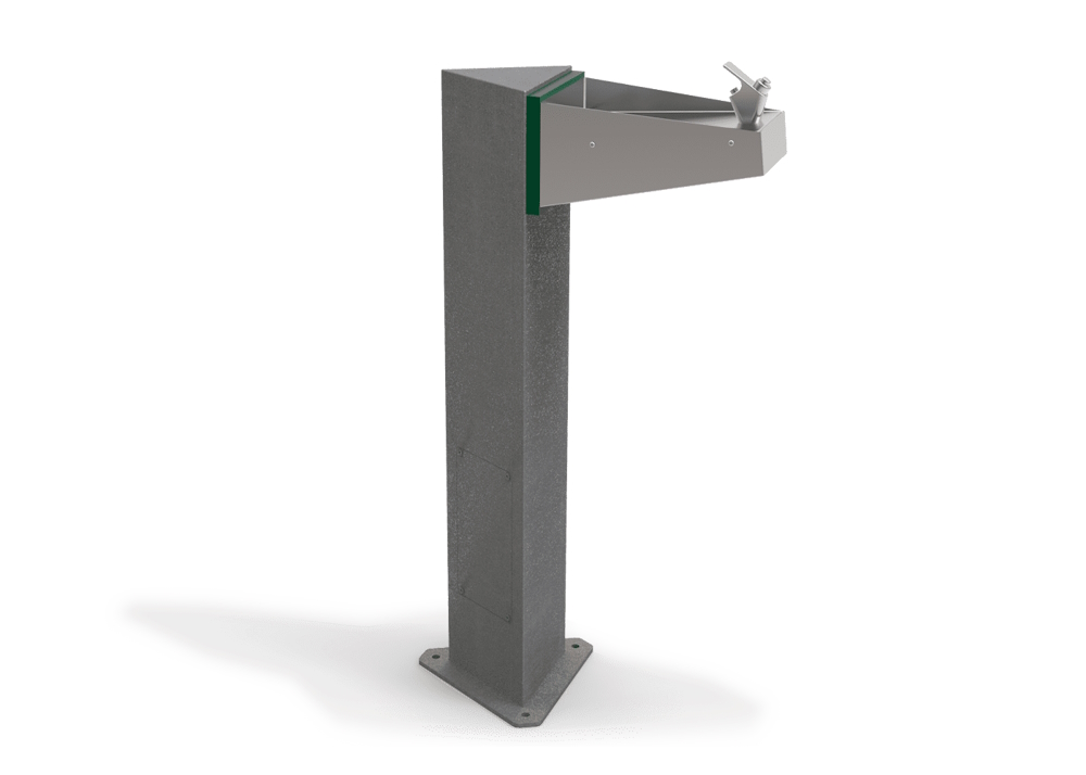 Fuente fabricada con columna triangular de acero con tratamiento Ferrus, proceso protector del hierro que garantiza una óptima resistencia a la corrosión.