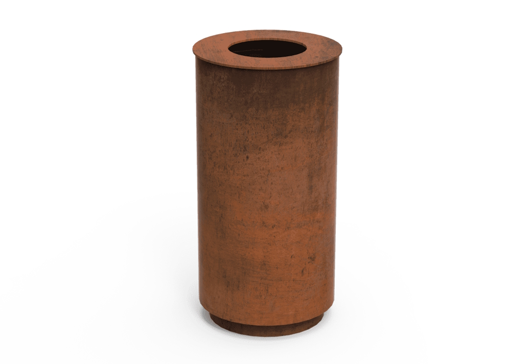 Papelera OLEA Circular PA 651 de 85 l. Fabricada en chapa de acero corten. Concebida para permanecer en el tiempo sin ningún tipo de mantenimiento. Aro interior para sujeción de la bolsa. Evita procesos contaminantes y contribuye a la sostenibilidad del medioambiente.
